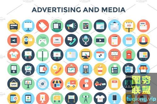 100 Flat Advertising and Media Icons 100个平面广告和媒体图标