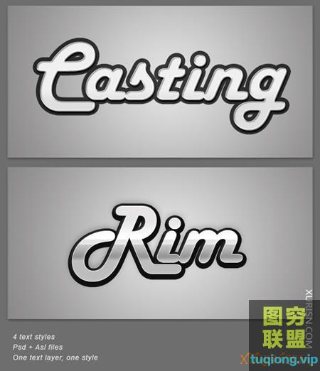 图穷联盟PS素材 » 4款优雅的黑白特效字体PS样式 PSD+ASL