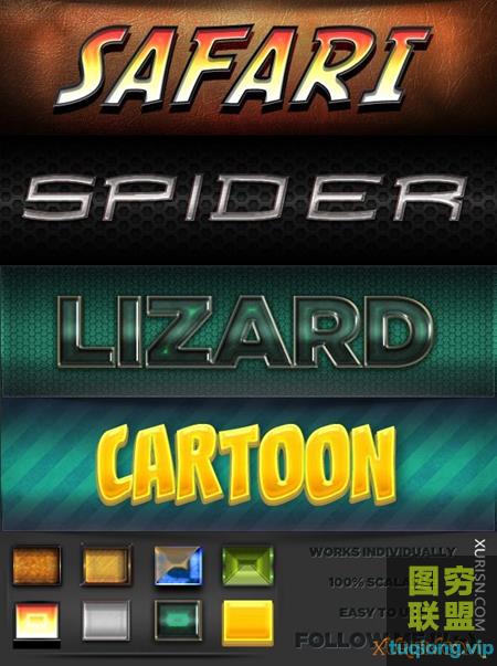 图穷联盟PS素材 » 6款酷炫游戏电影特效字体ps样式 PSD+ASL