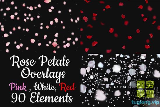 标题:90+红白粉色浪漫玫瑰花瓣叠加素材Pink White Red Rose Petals Overlay