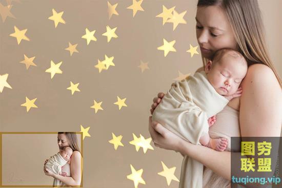 图穷联盟PS素材 » 47张高清心形星形等形状照片叠加素材Gold Star Overlays
