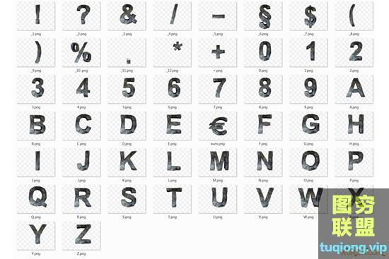 图穷联盟PS素材 » 50P石头岩石数字字母PNG透明素材Rocky Letters , Stone Alphabet Numbers