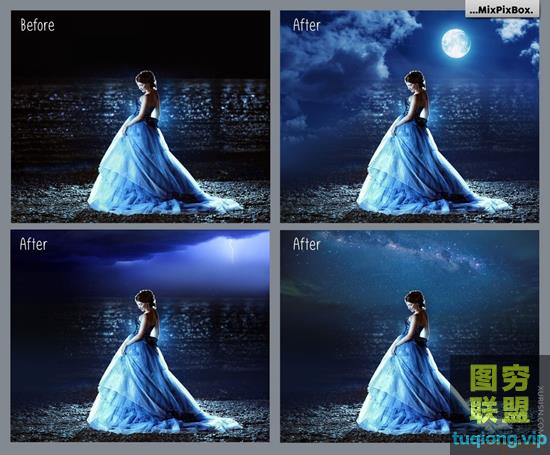 图穷联盟PS素材 » 100张高清炫丽夜晚天空图像照片叠加素材集Night Sky Overlays