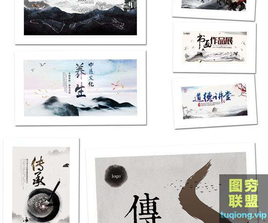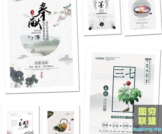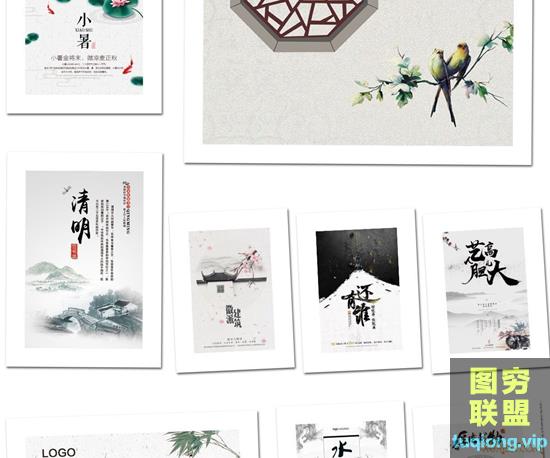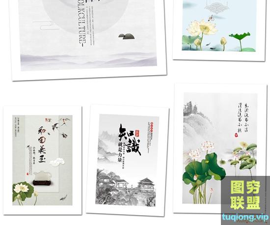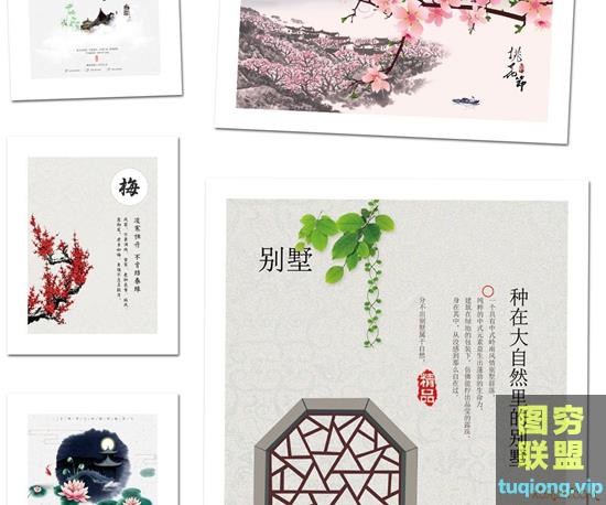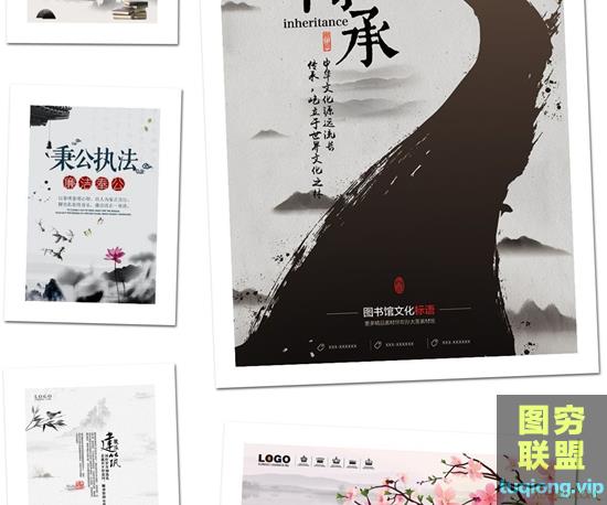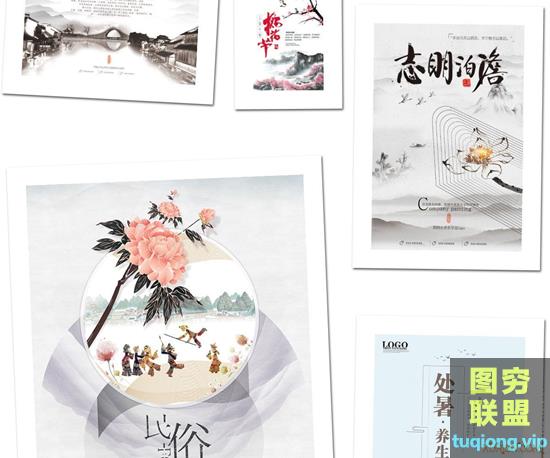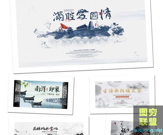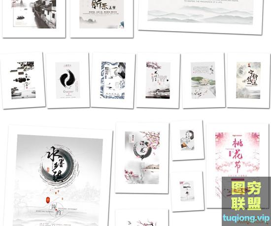 图穷联盟PS素材 » 47款中国风水墨模板古典山水古风展板桃花节背景海报PSD素材
