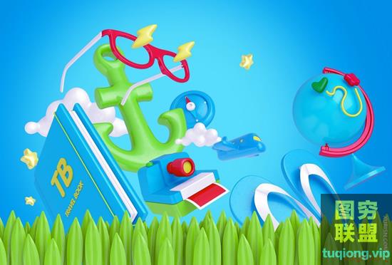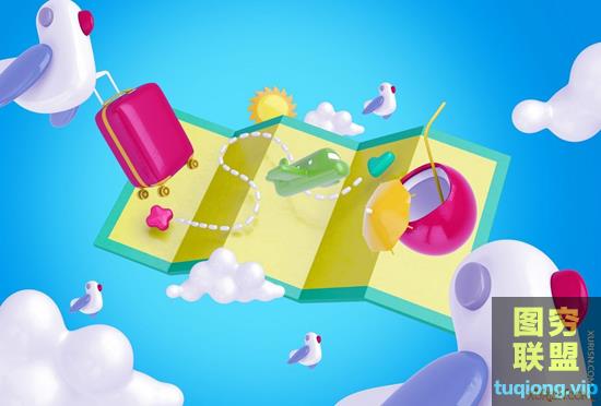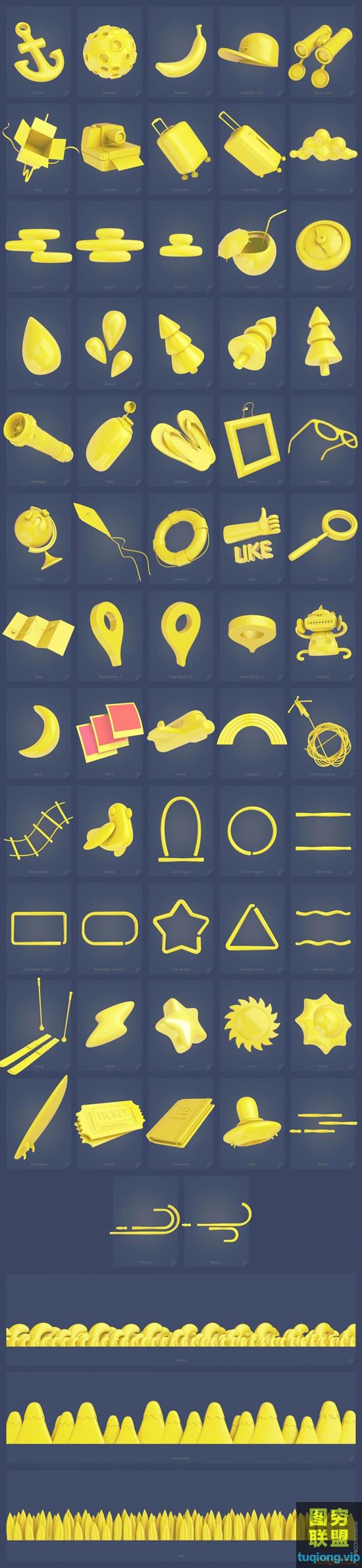 图穷联盟PS素材 » 超大卡通旅行主题场景模型豪华PSD素材包 Bright Travel Items Scene