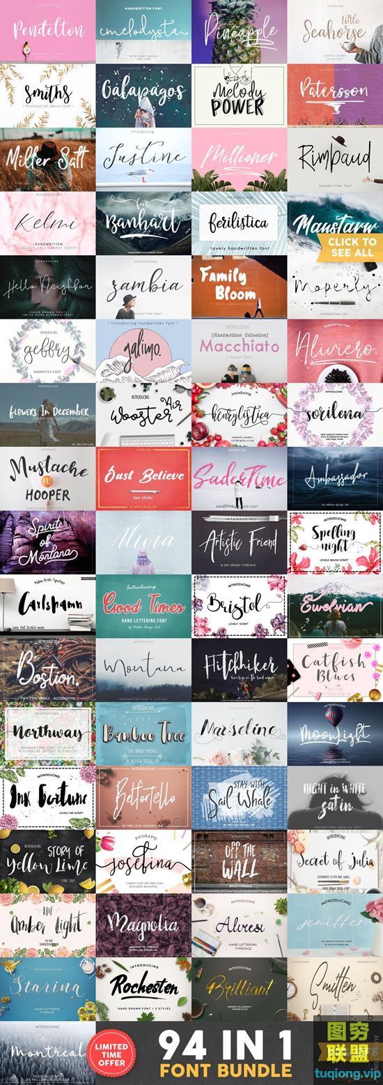 图穷联盟PS素材 » 94款英文设计字体合集 94 IN 1 Font Bundle