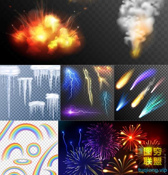 烟花 烟 爆炸 彩虹 火花 闪电 裂纹 冰柱 烈火 彗星 矢量图集