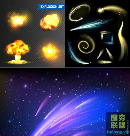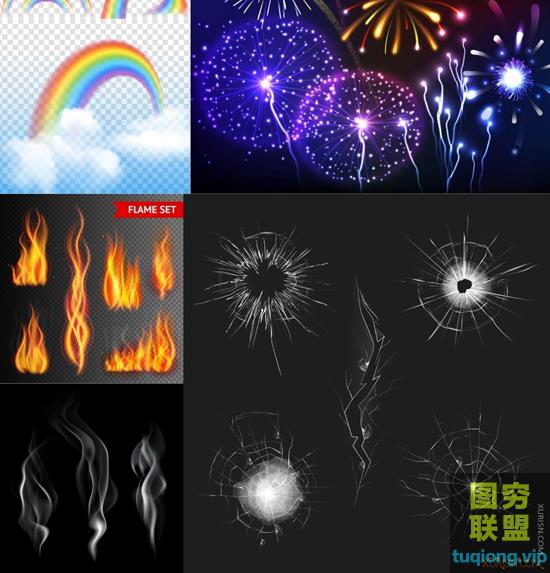 图穷联盟PS素材 » 烟花 烟 爆炸 彩虹 火花 闪电 裂纹 冰柱 烈火 彗星 矢量图集