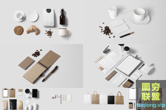 图穷联盟PS素材 » 高清咖啡品牌文具模型PSD样机素材Coffee Stationery Mockup