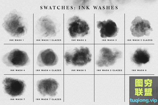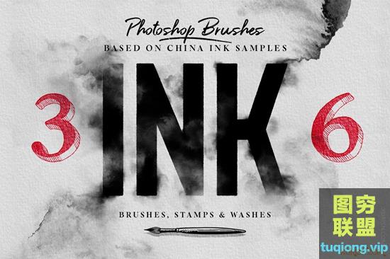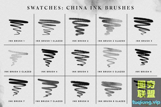 图穷联盟PS素材 » 36款中国风水墨photoshop笔刷合集Photoshop Ink brushes