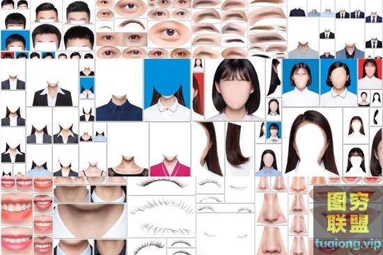 图穷联盟PS素材 » 最美证件照 男女头发五官衣服替换美化图片素材 151P