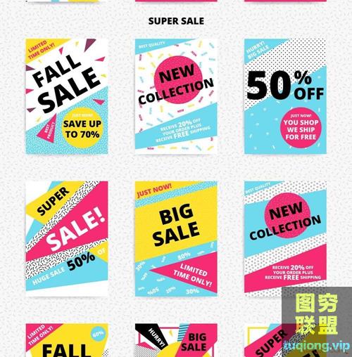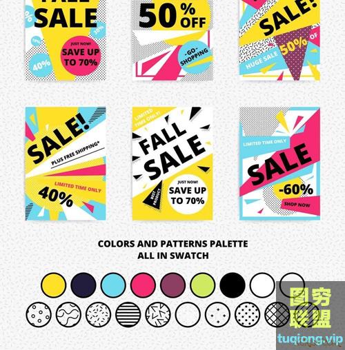 图穷联盟PS素材 » 18款通用促销海报图案矢量素材包sale posters + patterns