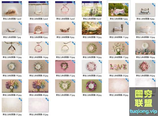 图穷联盟PS素材 » 36款高清唯美影楼新生儿写真摄影合成背景场景图片素材