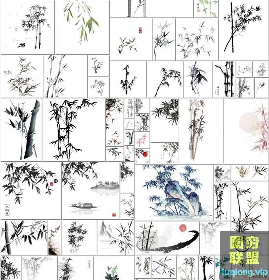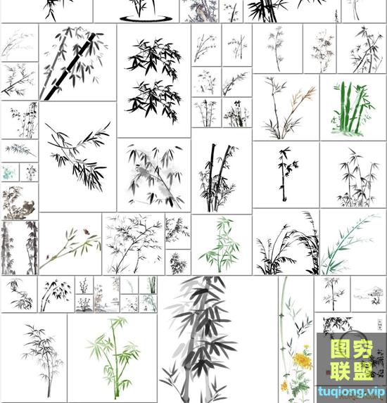 图穷联盟PS素材 » 269张中国古风工笔画水墨竹子PNG透明免抠图片素材