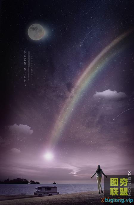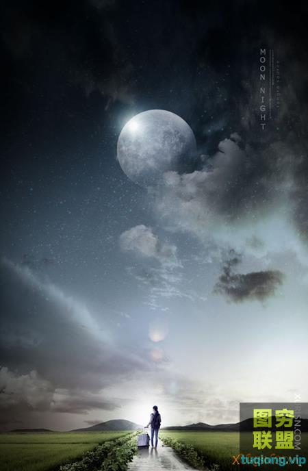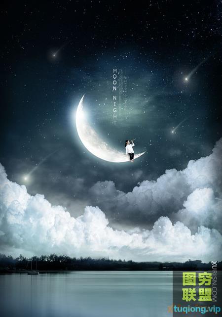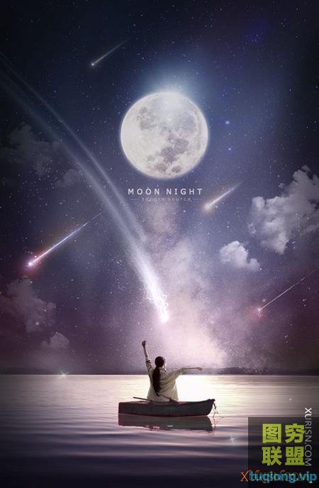 图穷联盟PS素材 » 10P梦幻之夜月亮流星风景海报PSD模版