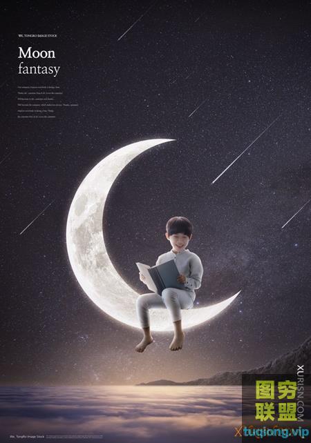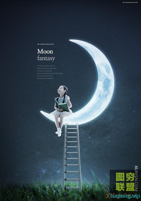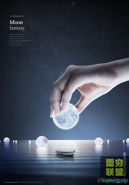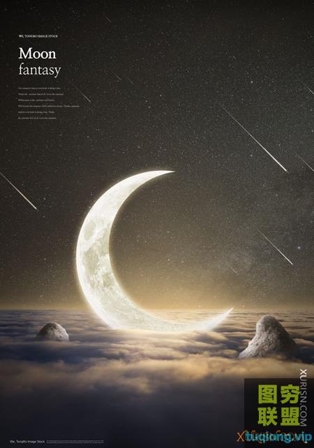 图穷联盟PS素材 » 20P 高清创意星空月亮梦幻月球PSD背景模版设计素材