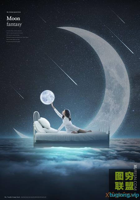 标题:20P 高清创意星空月亮梦幻月球PSD背景模版设计素材
