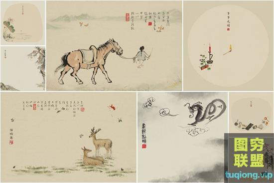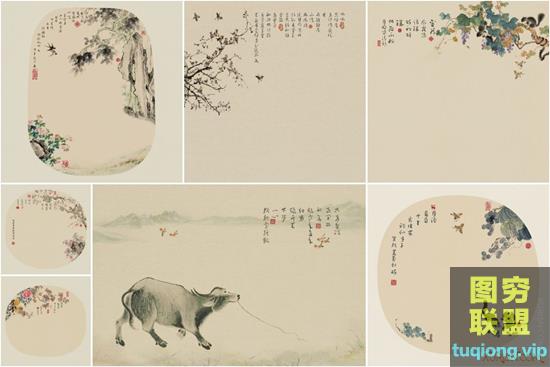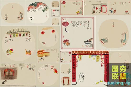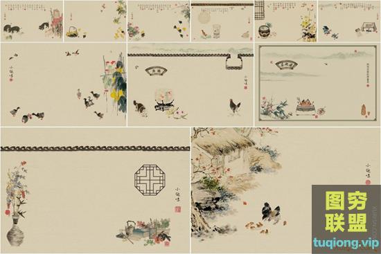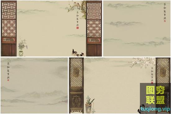 图穷联盟PS素材 » 57P高清中国风古风工笔画影楼儿童亲子背景PSD分层设计素材