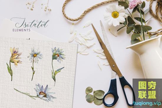 水彩菊花剪贴画的40个文件。DIY,结婚请柬,贺卡,报价,博客,海报等的素材