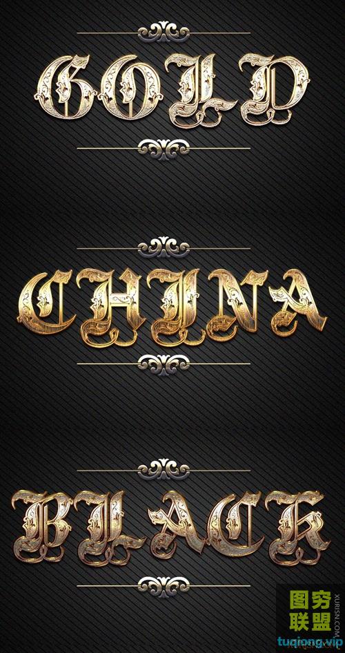 图穷联盟PS素材 » 40组3D精品文本文字PS图层样式集
