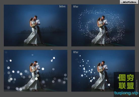 图穷联盟PS素材 » 100P高清银色灯串图片影楼婚纱合成素材Silver Lights Photo Overlays