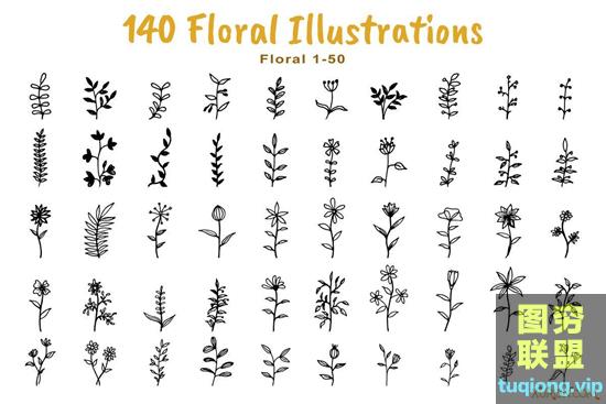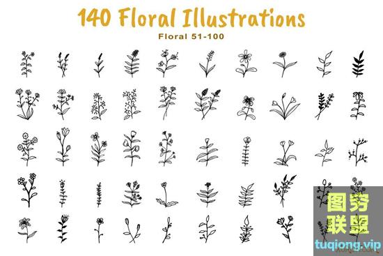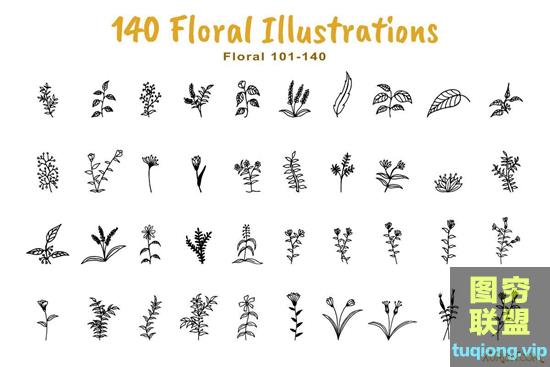 图穷联盟PS素材 » 200个精美手绘花卉树枝设计元素矢量图形素材集合