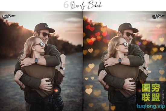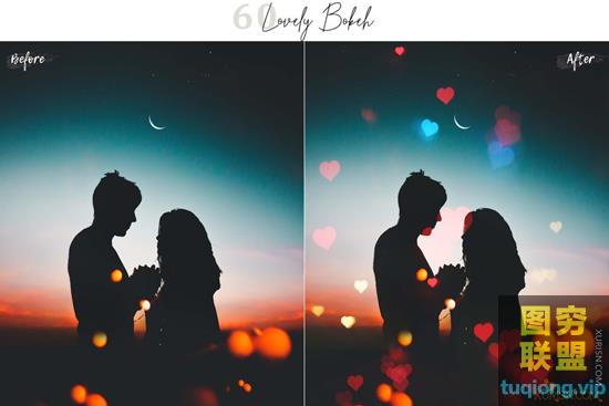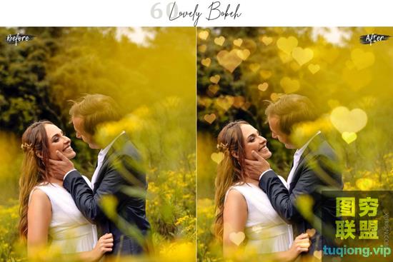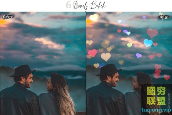 图穷联盟PS素材 » 60个爱情心形散景灯光效果照片叠加 Lovely Bokeh Lights Effect Ph...