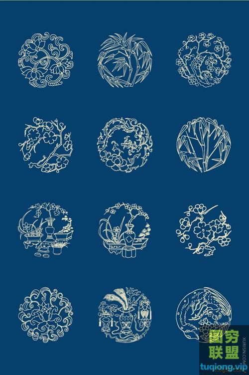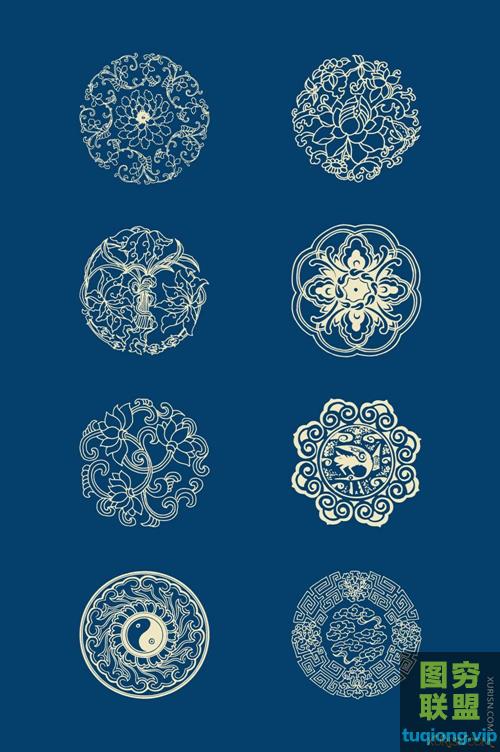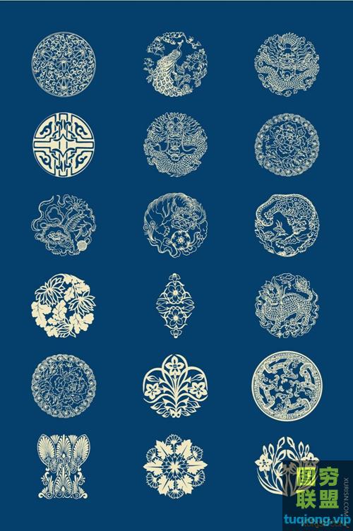 图穷联盟PS素材 » 456个中国风花纹图案矢量图片素材