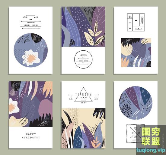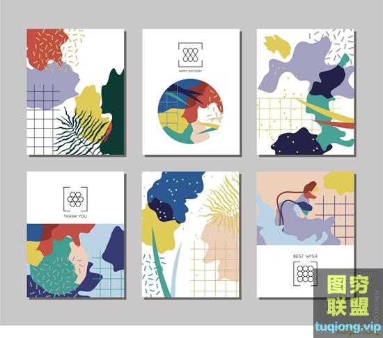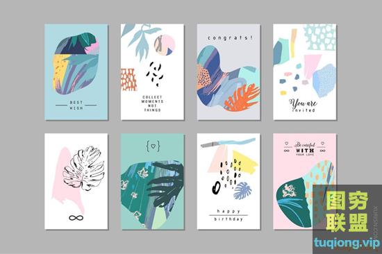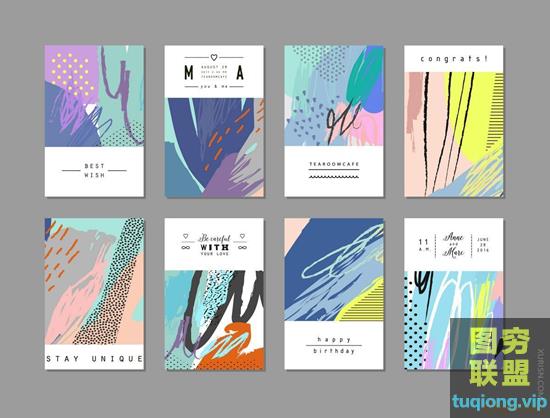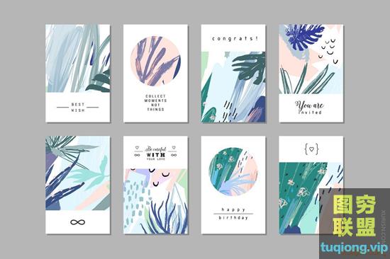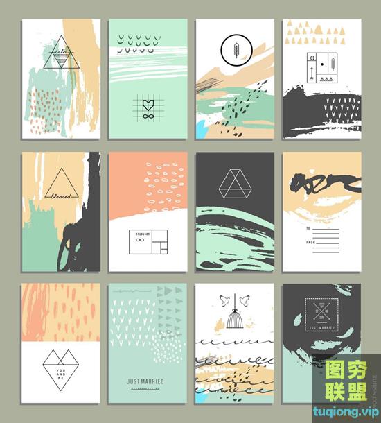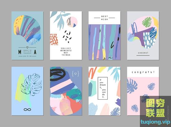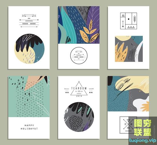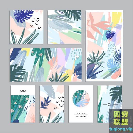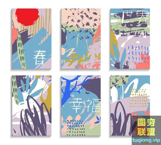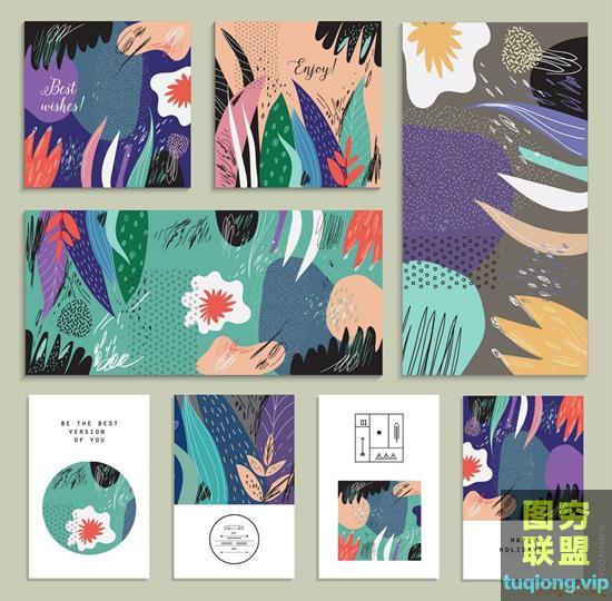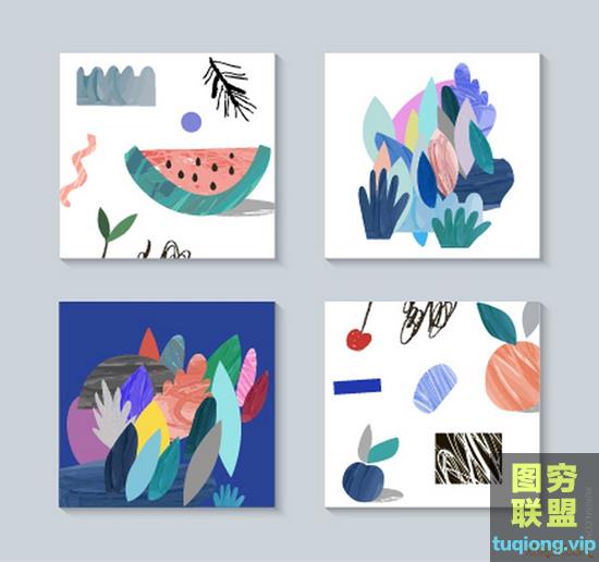 图穷联盟PS素材 » 140款清新插画抽象笔触背景eps矢量设计素材