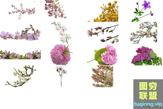图穷联盟PS素材 » 35P 透明免抠PNG盛开的花枝图片素材