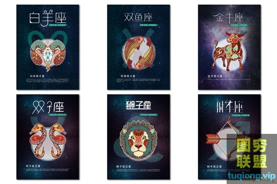 图穷联盟PS素材 » 24P 十二星座插画海报PSD图片素材