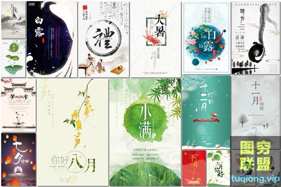 图穷联盟PS素材 » 33P 二十四节气海报PSD分层模板图片素材