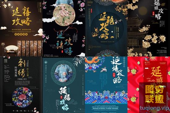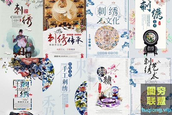 图穷联盟PS素材 » 30张国潮中国风传统刺绣海报PSD分层模板素材
